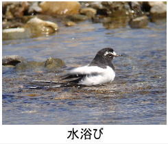 解説:ハクセキレイと同じく通年見られるが、水辺及びその付近以外ではあまり見られない。地鳴きは、ハクセキレイよりもやや濁った声で「ジュジュ」と鳴く。繁殖期には、複雑な声でさえずる。黒い頬に白くはっきりした眉斑がある。日本固有種といわれるが、韓国、台湾、中国などでも観察例がある。