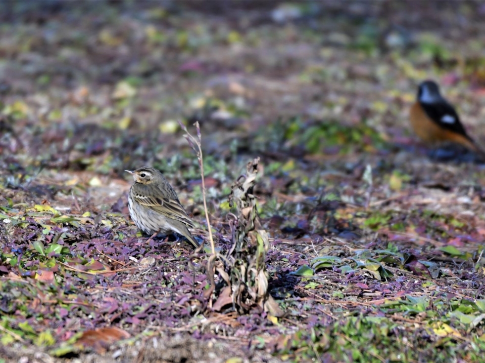 ジョウビタキの傍で採食していました。草叢と同じような羽色で目を離すと何処にいるか分からなくなります。