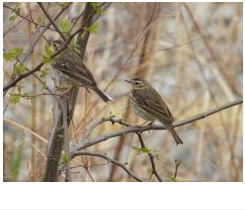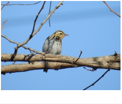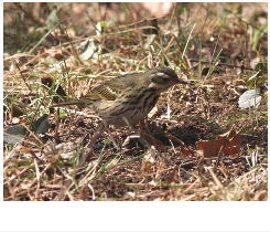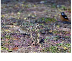 解説:同じセキレイ科のタヒバリと似るが、川辺に多いタヒバリと異なり、ビンズイは林の中や林縁で見られることが多い。外観的には、ビンズイは目の後方に白斑があり、タヒバリとの識別ポイントとなっている。当地では主に秋〜冬にかけて観察される。