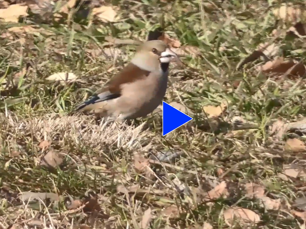片倉城跡公園定期カウントにて 地面で採餌するシメ