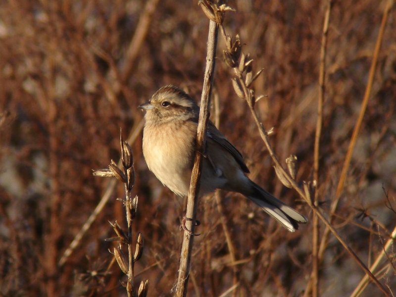冬枯れの河原のホオジロ(メス)。 冬羽はやや全体が淡色になるようだ。