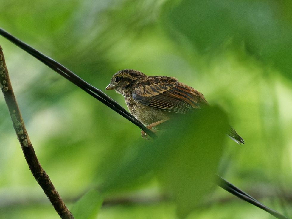 密生した藪に巣立ちした雛が潜んでいました。