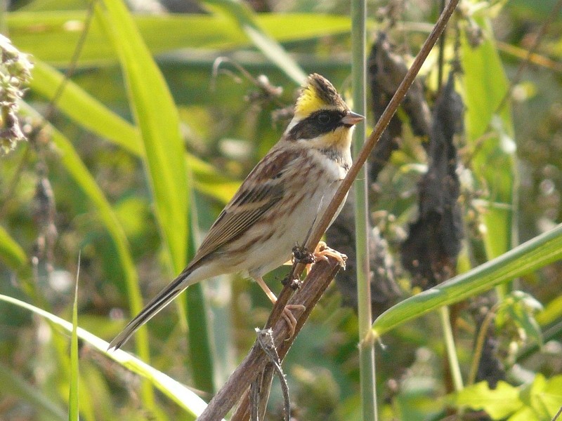 水辺を散歩中、突然数メートル先のアシにとまった。