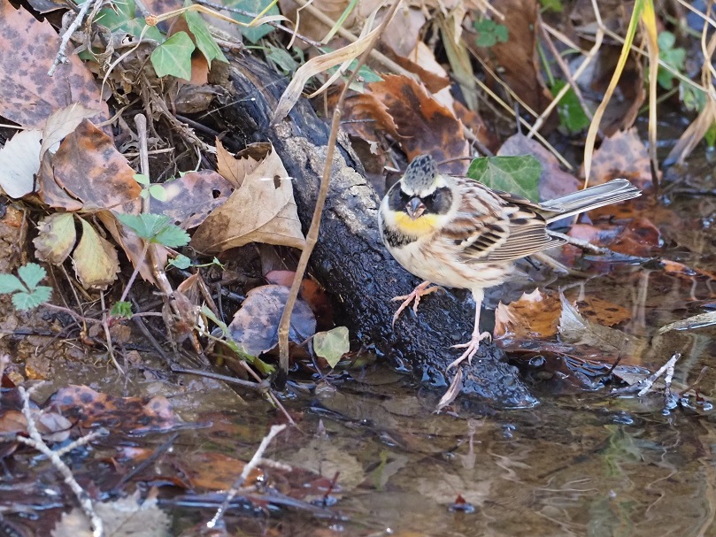 ミヤマホオジロ オスが水飲みに出て来た