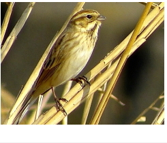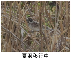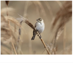 解説:当地では冬鳥である。河川敷のヨシ原などで茎の中の虫などを採食する。茎を割る時の音や、「チュイーン」という地鳴きで存在がわかる。夏羽オスは黒い頭をしているが、当地で観察される冬羽はオス、メスとも同じような地味な体色をしている。