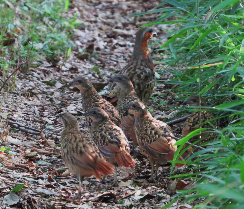裏山に入ってすぐ水道局用地と明星大へのわかれ道でこの親子に出会った。子供だけだったらすぐ逃げたでしょうが、親は私を認識しているのであまりあわてずに散歩を楽しんでいました。