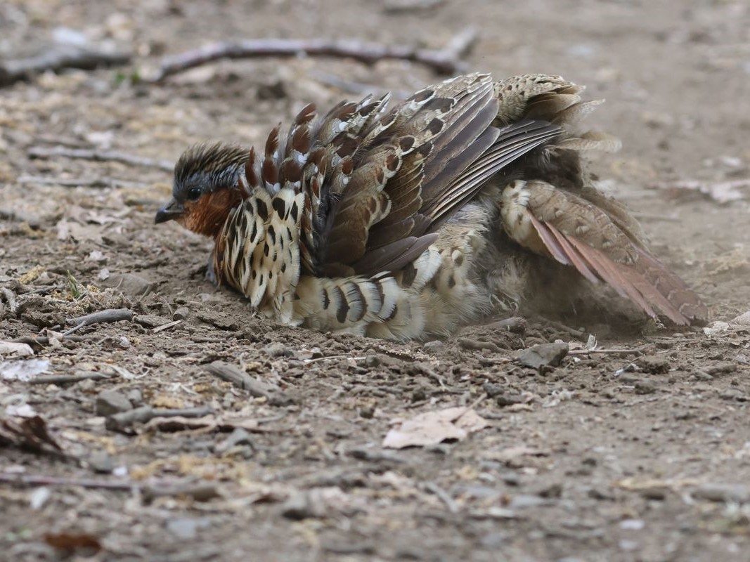 コジュケイがすぐ目の前で砂浴びをしていました。