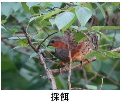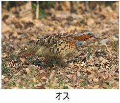 解説:中国原産の鳥であるが、人為的に日本に持ち込まれた外来種である。当地の河川敷、公園の林などに周年生息し、「チョットコイ」の鳴き声を聞くことも多い。しかし、藪の中にいることが多いため、姿を見かけることは少ない。雌雄同色である。