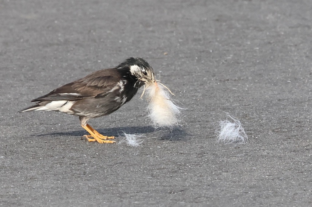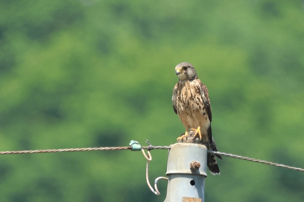 タイトル:今年も同じペアで繁殖 観察年月日:2025年5月15日 羽数:♂1羽、♀1羽 場所:大和田三丁目 区分:繁殖 メッシュ:八王子8J コメント:左足にハンディのある♂、秋冬は温暖地に移動し、3月4日に戻って来る。4月初旬は♂2羽、♀3羽の五つ巴で縄張り合戦し、結局パートナーは昨年と同一の♀で4月に入ってから合流し、一週間前より♂♀ほぼ同時に餌を咥えて八王子8Jと8Kにまたがる建物屋上のいずれかに運ぶ。非常に慎重な番いで猛禽及びカラスを警戒して必ず2羽で餌探しに向かい、最初に♂が先行し、安全なことを確認して♀を誘導する。営巣地を特定されないよう途中2か所位経由して行き来するようである。