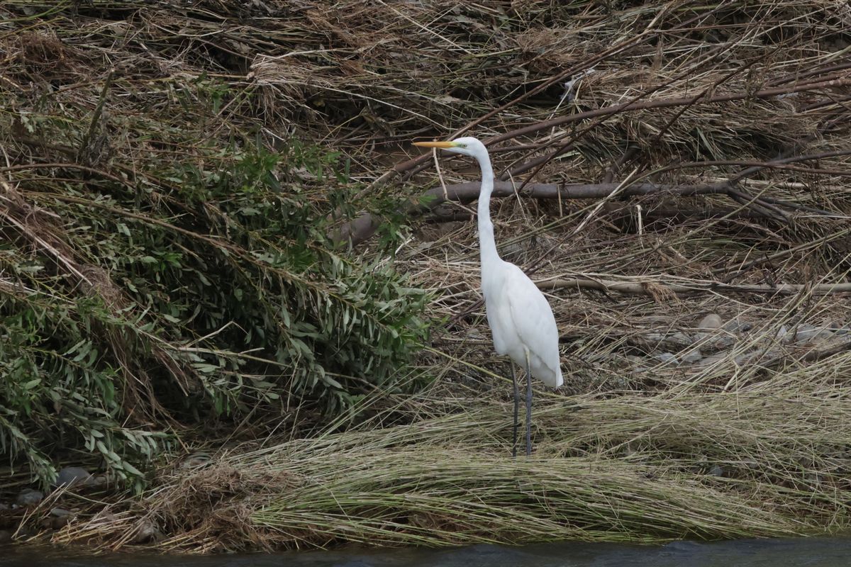 タイトル:シラサギが揃いました。 観察年月日:2024年9月5日 羽数:コサギ4羽、チュウサギ6羽、亜種チュウダイサギ多数、亜種ダイサギ1羽 場所:浅川、一番橋上流 区分:行動 メッシュ:武蔵府中1J コメント:コサギ(留鳥)、チュウサギ(この辺りでは旅鳥)、亜種チュウダイサギ(留鳥)、亜種ダイサギ(冬鳥)が揃いました。 亜種ダイサギは今シーズン初認、チュウサギは渡り途中の立ち寄りと思われますが、8月29日に1または2羽確認していますが、今日はサギの群れの中に6羽確認しました。浅川では単独か多くても一度に2羽くらいしか見たことがないので、6羽まとめては珍しいです。