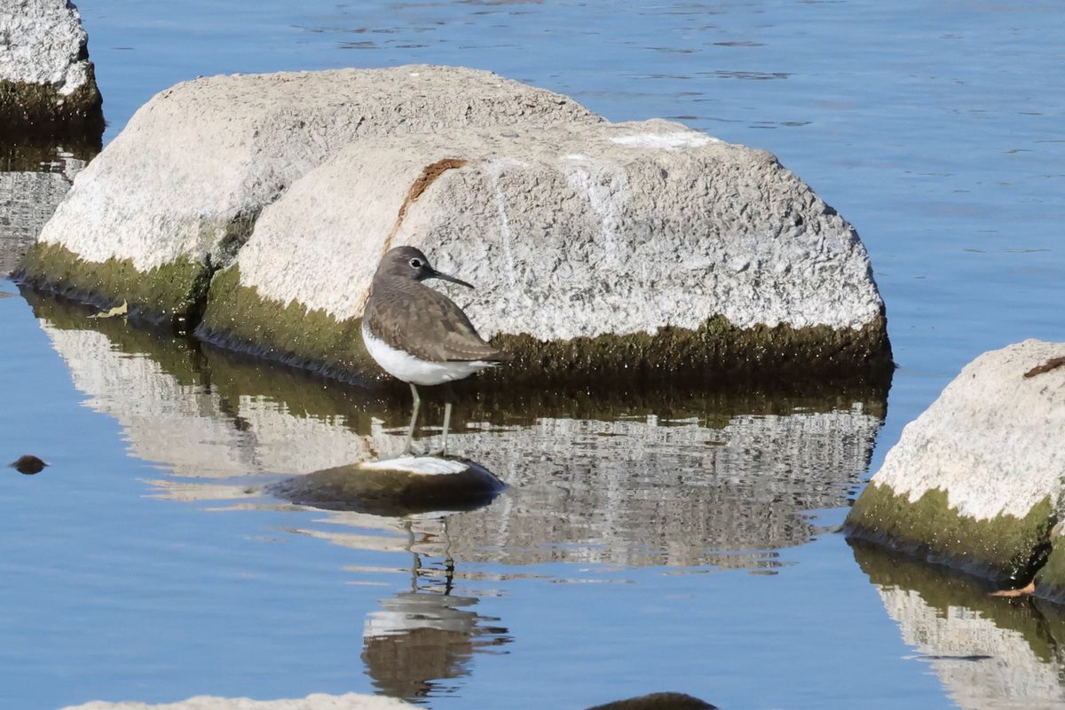 クサシギはたいていそうですが、1羽で単独でいて、こちらに気が付いていたと思いますが、飛ばずに、歩いて上流側に移動して遠ざかりました。