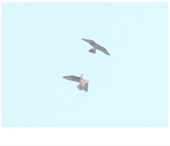 解説:当地での観察例は秋〜冬が多い。川沿いの鉄塔や橋の上などであたりを見渡している姿が見られる。飛ぶと翼の先がとがって見えるのは、ハヤブサ科の鳥の特徴である。
