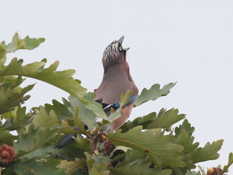 どんぐりをいくつか飲み込んでは飛び去り、また来て同じことを繰り返す。