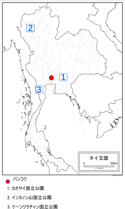 | タイ国内の3つの国立公園と見られる野鳥 画像クリックで拡大画像表示 |