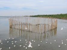 バンコクから日帰りで海の鳥を見るなら、こちらが初心者向けとなります。公共交通はBTSのスクンビット線がケーハまでしか行きませんので、そこからタクシーなどで15分ほどです。ちょっとした観光地で、一部餌付けもされてしまっていますが、チャガシラカモメ、クロハラアジサシをはじめ多くの水鳥に会えます。桟橋の他はマングローブの林と干潟になっていて、私はなかなかタイミングが合わずにいますが、干潮時に訪れればシギ・チドリ類も多くみられることと思います。