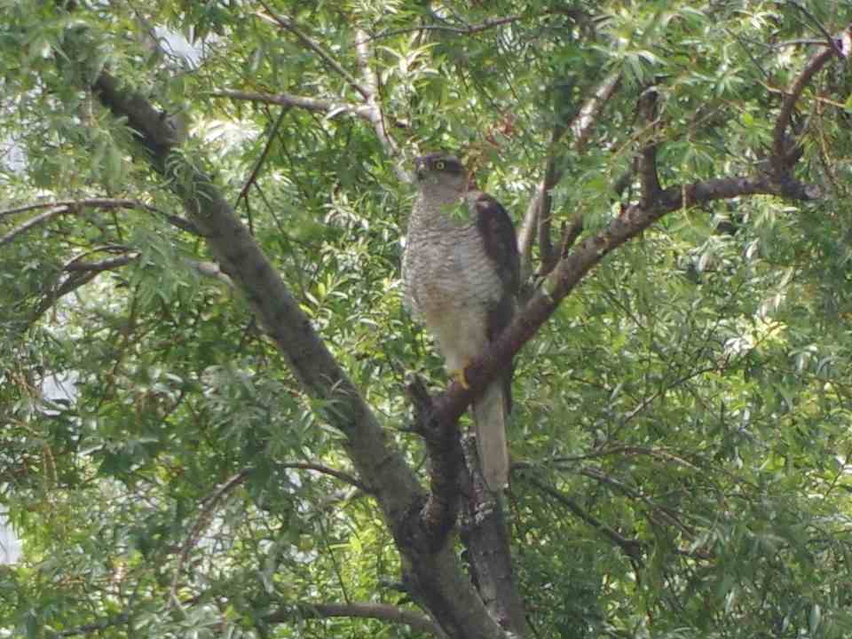 タイトル:JR八王子駅北口の集団ねぐら2500羽 観察年月日:2017年7月71日 羽数:2500羽± 場所:JR八王子駅北口駅前通り 区分:塒 メッシュ:八王子7J コメント:JR八王子駅北口前のムクドリの集団ねぐらを観察した。この集団ねぐらは2016年までは駅北口の西側の街路樹に形成されていたものであるが、街路樹に追い払い用の警報機が取り付けられたり、一部街路樹が伐採されたりして、今年は駅前通りの街路樹に移動した。駅前通りの街路樹はベニバナトチノキで、ここにも最近追い払い用の警報機が付けられているが、ムクドリは慣れてしまっているようである。この日の天気は晴れ、17時45分に現地に着いた時は、既に500羽以上のムクドリがビル屋上のアンテナに集結していた。18時5分に2羽のチョウゲンボウが現れるとムクドリ集団は一時退散した。その後もムクドリは増え続け、ムクドリ団子(寫眞)二つ、三つとできてきた。凡その羽数をカウントすると2500羽位であった。18時27分、ムクドリは集中豪雨のように街路樹に入りこんだ(寫眞)。18時45カウント調査は終了した。